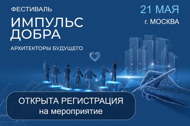 6 апреля открылась регистрация на Фестиваль «Импульс добра» – одно из ключевых событий года в сфере социального предпринимательства. Мероприятие пройдёт 21 мая в Москве на площадке Цифрового делового пространства. Регистрация участников доступна на сайте Фонда региональных социальных программ «Наше будущее».
