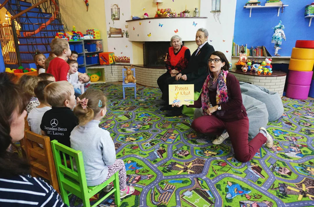 Пришла идея соединить два мира – детей и пожилых. Наталья пригласила жителя «Дома у парка», бывшего учителя литературы, в детский сад почитать детям сказку. Чтения состоялись в уютной комнате с камином. Начались встречи пожилых людей и детей – проект «Сказки у камина». Общение оказалось важным для обоих миров. Пожилые чувствовали себя нужными, малыши получали внимание бабушек и дедушек, которых во многих семьях не было, либо жили далеко. «Сказки у камина» привлекли клиентов и в дом престарелых, и в детский сад.