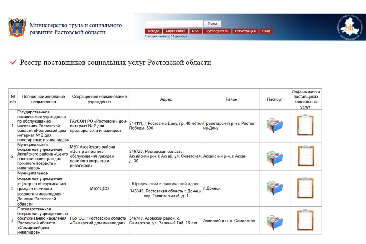 Примеры организаций в реестре поставщиков соцуслуг Ростовской области – по состоянию на декабрь 2025 года список включает 220 предприятий. Источник: Министерство труда и социального развития Ростовской области