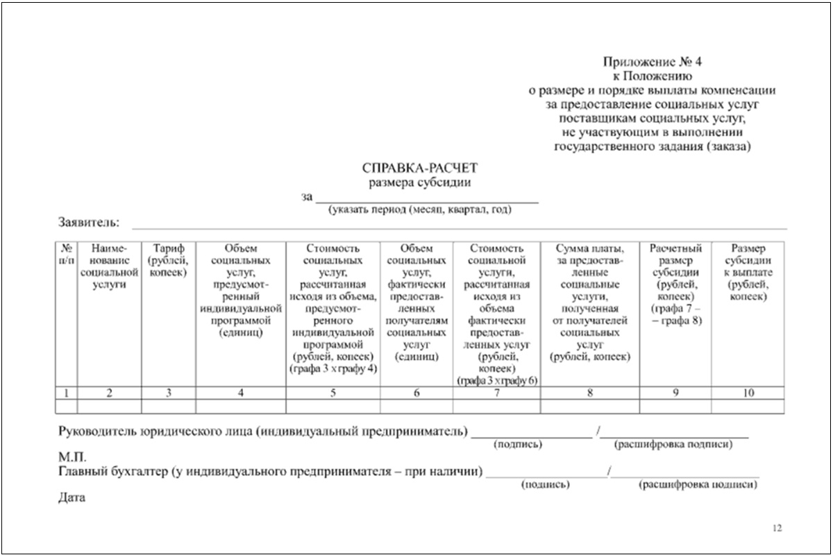 Образец справки-расчёта размера субсидии. Источник: Государственная система правовой информации