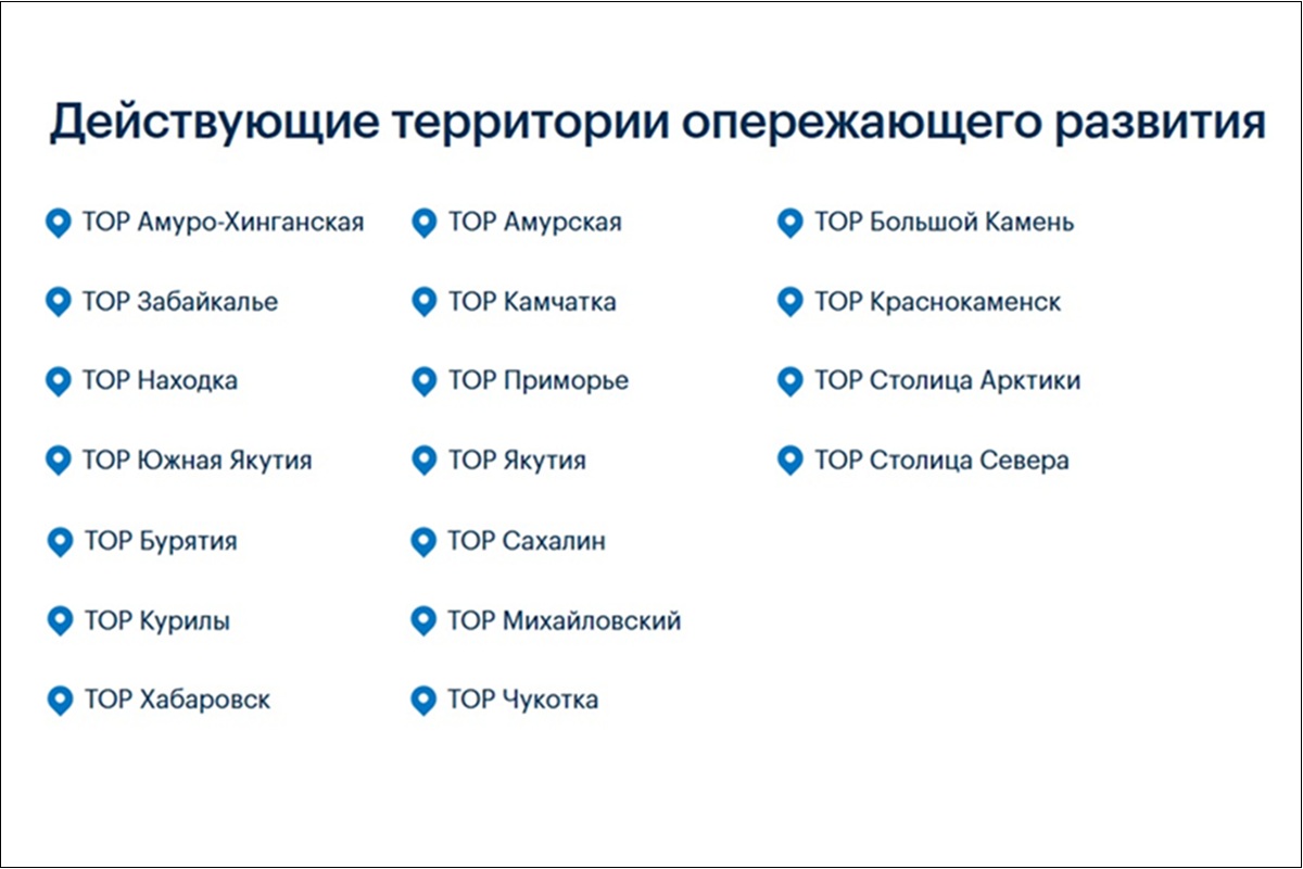 Пример. Корпорация развития Дальнего Востока и Арктики (КРДВ) помогает открыть собственное дело в регионах со сложным климатом. Участники проекта получают налоговые льготы, юридическую поддержку деятельности и помощь в привлечении персонала.