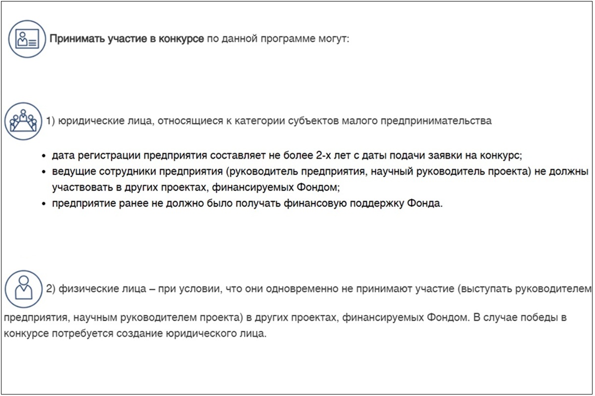 Условия отбора участников в программе «Старт» от Фонда содействия инновациям. Источник: fasie.ru