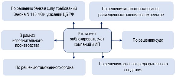 Попасть под блокировку по 115-ФЗ могут и физлица, и ИП, и компании. Но бизнес оказывается в группе риска чаще, потому, что он проводит больше финансовых операций на крупные суммы.