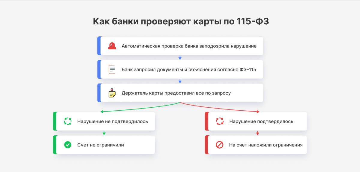 Банк не просто имеет право, но и обязан отреагировать на нарушение. Иначе он может попасть под статью 15.27 КоАП и и получить штраф (для юрлиц по ряду составов — сотни тысяч рублей). Поэтому финансовые компании относятся к проверкам очень тщательно и не станут игнорировать подозрительные операции.